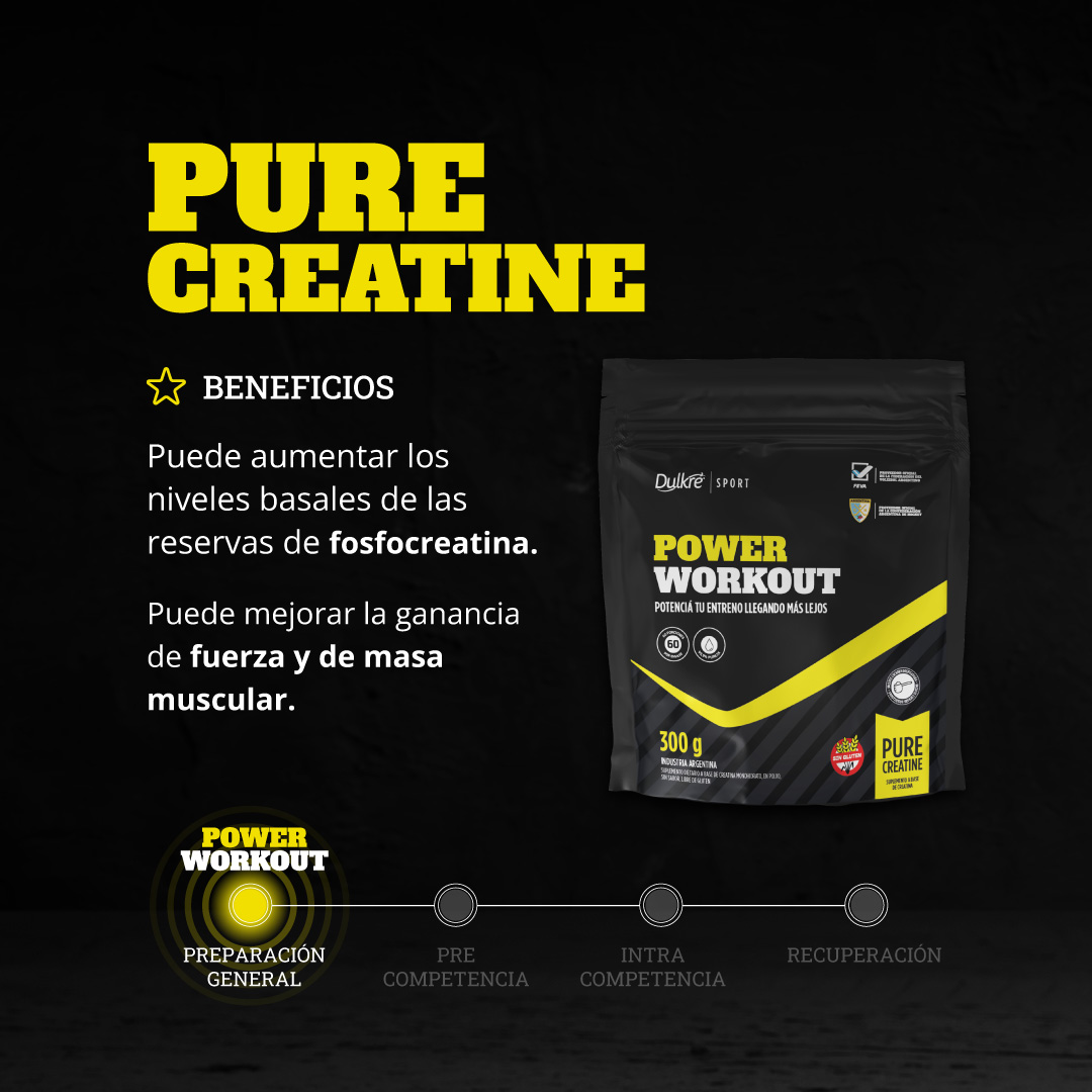 Aumenta los niveles basales de las reservas de fosfocreatina. Contribuye a mejorar el rendimiento deportivo. Puede mejorar la ganancia de fuerza y de masa muscular.