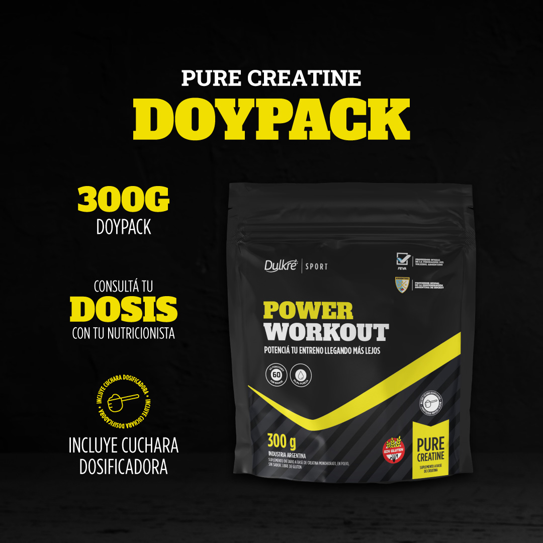 Pure Creatine Doypack: Disolver 5g (una cuchara de té) en 200ml de agua. Podés consumirla sola totalmente o agregarla al batido.
