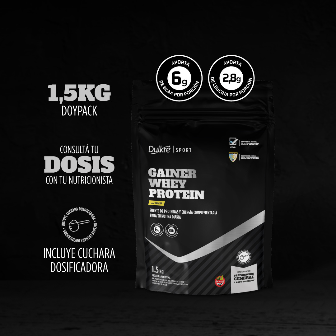 Gainer Whey Protein: Doypack de 1.5kg en polvo con cuchara dosificadora incluida. Pure Creatine Doypack de 300g en polvo con cuchara dosificadora incluida.